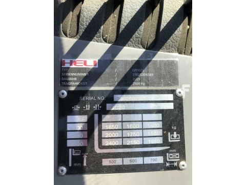 Wózki gazowe Heli CPYD 25 2019 używane Gaz LPG 2500 kg 4700 mm 500 mm 2150 mm 506 h 230252D6589 FEM2A 1200 nieznany