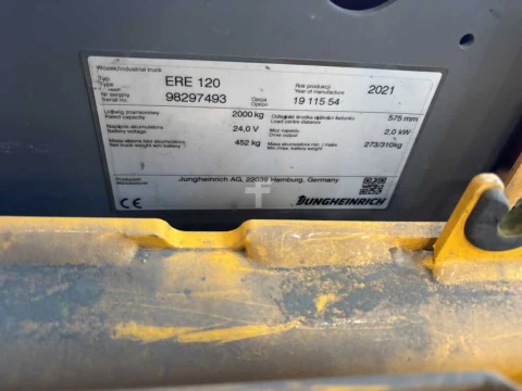Wózki niskiego podnoszenia Jungheinrich ERE 120 2021 używane Elektryczny 2000 kg 200 mm 600 mm 1480 mm 3948 h 98297493 1150 mm Tandemrollen; Plattform klappbar kwasowo-ołowiowy