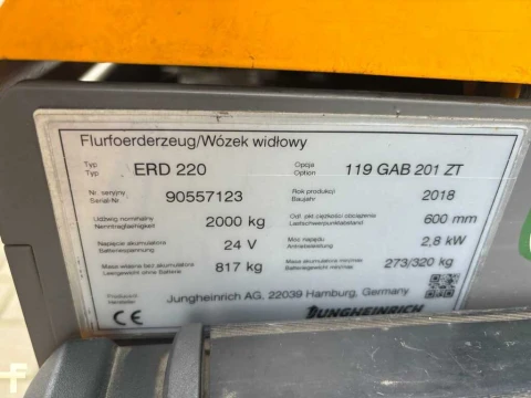 Wózki z platformą operatora Jungheinrich ERD 220 KP 2018 używane Elektryczny 2000 kg 2010 mm 600 mm 1440 mm 5291 h 90557123 klappbare Standplattform kwasowo-ołowiowy