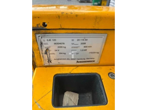 Wózki niskiego podnoszenia Jungheinrich EJE 120 2008 używane Brak 2000 kg 210 mm 600 mm 0 mm 8096 h 90304078 LxBxD: 1150mm kwasowo-ołowiowy