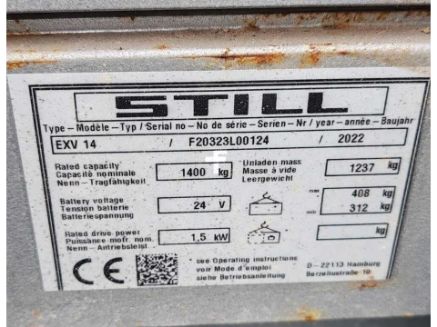 Wózek wysokiego podnoszenia Still EXV 14 LION 5.3m/ 2022y/ 2750mh 2022 używane litowo-jonowy 1400 kg 5316 mm 0 mm 2265 mm 2750 h F20323L00124 litowo-jonowy