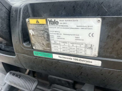 Wózki gazowe Yale GLP25VX 2013 używane Gaz LPG 2500 kg 4950 mm 0 mm 2170 mm 4282 h B875B25059L nieznany