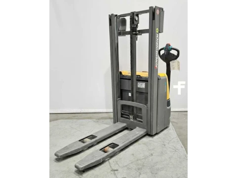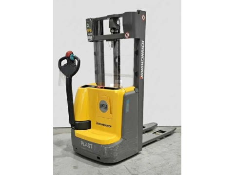 Jungheinrich EJC112 Li-ion 2.5m/ 337mh to wózek wysokiego podnoszenia, który łączy w sobie wydajność i nowoczesną technologię, aby sprostać wymaganiom intensywnej pracy magazynowej.