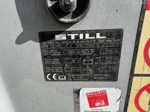 Elektryczne 3-kołowe Still RX 20-16 2013 używane Elektryczny 1600 kg 6070 mm 500 mm 2160 mm 14402 h 516211D00712 FEM2A 1200 mm Bluespot hinten kwasowo-ołowiowy