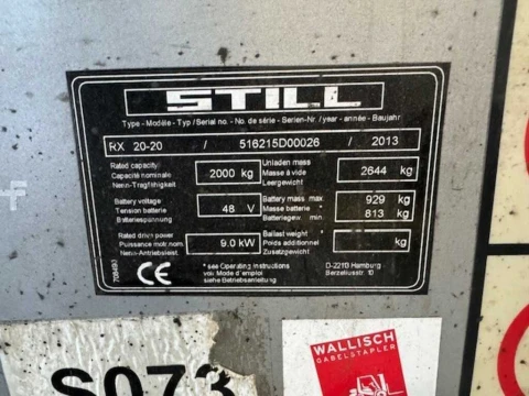 Elektryczne 3-kołowe Still RX 20-20 2013 używane Elektryczny 2000 kg 4765 mm 500 mm 2160 mm 13310 h 516215D00026 1200 mm kwasowo-ołowiowy