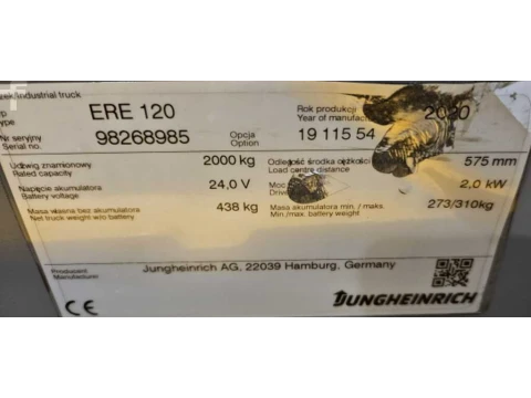 Wózki niskiego podnoszenia Jungheinrich ERE 120 Li-Lion 2020 używane Elektryczny 2000 kg 0 mm 600 mm 0 mm 5348 h 98268985 Plattform Klappbar litowo-jonowy