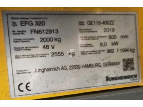 Elektryczne 4-kołowe Jungheinrich EFG 320 2019 używane Elektryczny 2000 kg 4000 mm 0 mm 0 mm 4128 h FN612913 nieznany