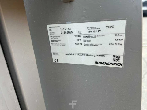 Wózek wysokiego podnoszenia Jungheinrich EJG 112 Li-ion 3.2m/ 575mh 2020 używane Elektryczny 1200 kg 3200 mm 0 mm 2100 mm 575 h 91652510 litowo-jonowy