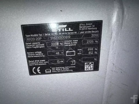 Elektryczne 4-kołowe Still RX20-20P 2018 używane Elektryczny 2000 kg 5700 mm 500 mm 2460 mm 15021 h 516230J00819 2200 mm nieznany