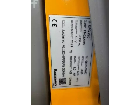 Elektryczne 3-kołowe Jungheinrich EFG 220 2020 używane Elektryczny 2000 kg 2900 mm 500 mm 1960 mm 2169 h FN632949 1150 mm kwasowo-ołowiowy