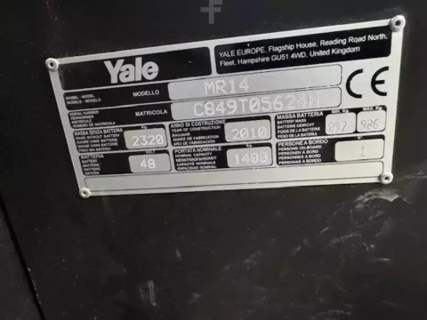 Reach Truck Yale MR14 2010 używane Elektryczny 1400 kg 5500 mm 600 mm 2400 mm 1859 h C849T05624H 1150 mm 360 Grad Lenkung kwasowo-ołowiowy