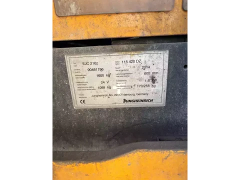 Wózek wysokiego podnoszenia Jungheinrich EJC 216z 2014 używane Elektryczny 1600 kg 4200 mm 600 mm 1900 mm 5137 h 90451156 1150 kwasowo-ołowiowy