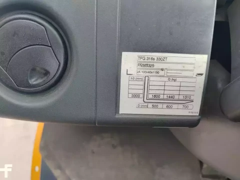 Wózki gazowe Jungheinrich TFG316s LPG/ 3.3m/ 2018y/ 9151mh 2018 używane Gaz LPG 1600 kg 3300 mm 500 mm 2160 mm 9151 h FN565325 980 mm, ISO Klasse: ISO Klasse 2A nieznany