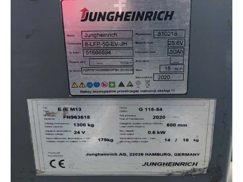 Wózki niskiego podnoszenia Jungheinrich EJE M13 Li-Ion 2020 używane Elektryczny 1300 kg 0 mm 600 mm 0 mm 668 h FN963618 litowo-jonowy