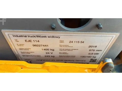 Wózki niskiego podnoszenia Jungheinrich EJE 114 Lion 1400kg/ 2018y/ 10138mh 2018 używane Elektryczny 1400 kg 0 mm 0 mm 0 mm 10138 h nieznany