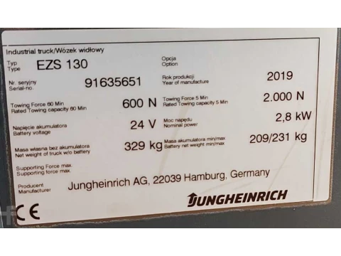 Wózki systemowe do implementacji Jungheinrich ezs 130 / 2019y/ 2447mh 2019 używane Elektryczny 3000 kg 0 mm 0 mm 0 mm 2447 h nieznany