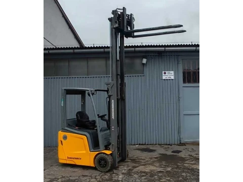 Wózek widłowy Jungheinrich EFG 213 LI ION to zaawansowane urządzenie, które łączy w sobie niezawodność i nowoczesne technologie. Idealny wybór dla firm wymagających efektywnego i ekologicznego transportu wewnętrznego.