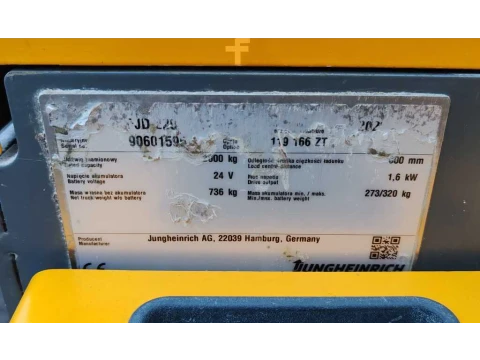 Wózek wysokiego podnoszenia Jungheinrich EJD 220 Li-ion 2020yy/ 1756mh 2020 używane Elektryczny 2000 kg 1660 mm 0 mm 1350 mm 1756 h 90601595 litowo-jonowy