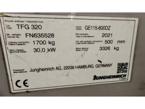 Wózki gazowe Jungheinrich TFG320 2021 używane Gaz LPG 2000 kg 6000 mm 500 mm 2550 mm 5010 h FN635528 nieznany