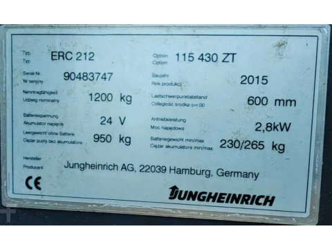 Wózek wysokiego podnoszenia Jungheinrich ERC 212 2015 używane Elektryczny 1200 kg 4300 mm 0 mm 2650 mm 7285 h 90483747 nieznany